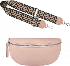 Made in Italy OBC Damen Leder Tasche Gürteltasche Crossbody Hüfttasche Bauchtasche Hüfttasche Umhängetasche Cross-Over Bodybag Schultertasche Handytasche Geldtasche (Altrosa)