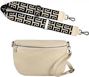Made in Italy Damen Leder Gürteltasche Crossbody Hüfttasche Bauchtasche Umhängetasche Brusttasche Crossover Bodybag Schultertasche Handytasche Geldtasche OBC Tasche Schminktasche Kosmetiktasche Beige
