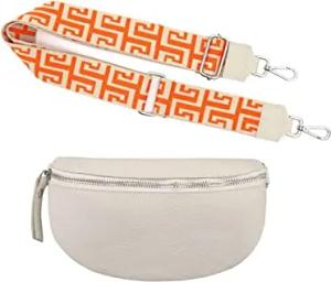 Made in Italy OBC Damen Set Gürteltasche + Schultergurt Leder Crossbody Hüfttasche Bauchtasche Umhängetasche Brusttasche Crossover Bodybag Schultertasche Handytasche Tasche Beige-Orange S (22cm)+Gurt