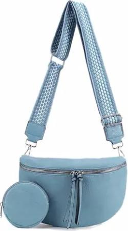Made in Italy Damen Leder Tasche Gürteltasche Crossbody Hüfttasche Bauchtasche Umhängetasche Wildleder Brusttasche Crossover Bodybag Schultertasche Handytasche Geldtasche Himmel S (Wildleder)