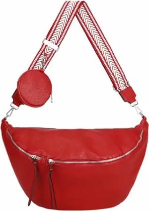 OBC Made in Italy Damen Leder Tasche Gürteltasche Crossbody Hüfttasche Bauchtasche Umhängetasche Cross-Over Bodybag Schultertasche Handytasche (Dunkelrot)