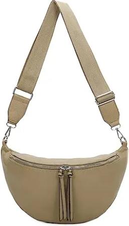 OBC Damen Tasche Crossbody Brusttasche Hüfttasche Schultertasche Umhängetasche Bauchtasche Gürteltasche Crossover Slingntasche Reise Bag Kunstleder Taupe V2