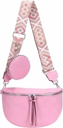Made in Italy OBC Damen Set Gürteltasche + Schultergurt Leder Crossbody Hüfttasche Bauchtasche Umhängetasche Brusttasche Crossover Bodybag Schultertasche Handytasche Tasche Pink S (22cm) + Gürtel