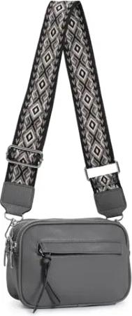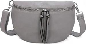 OBC Damen Tasche Crossbody Hüfttasche Brusttasche Umhängetasche Bodybag Cross Over Schultertasche Handytasche Gürteltasche Handtasche Freizeit Reise Leder Optik Grau