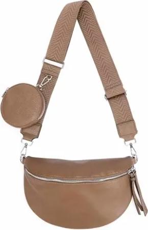 Made in Italy Damen Leder Tasche Gürteltasche Crossbody Hüfttasche Bauchtasche Umhängetasche Wildleder Brusttasche Crossover Bodybag Schultertasche Handytasche Geldtasche Taupe (Leder)
