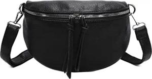 Made in Italy Damen Leder Gürteltasche Crossbody Hüfttasche Bauchtasche Umhängetasche Brusttasche Crossover Bodybag Schultertasche Handytasche Geldtasche OBC Tasche Schminktasche Kosmetiktasche Pudra