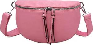 Damen Tasche Gürteltasche Crossbody Leder Optik Hüfttasche Bauchtasche Umhängetasche Cross-Over Bodybag Schultertasche Handytasche Leder Optik Pink
