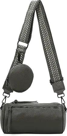 OBC Damen Zylinder Crossbody Tasche Umhängetasche Schultertasche Handtasche Gürteltasche Handytasche Bucket Bag Retro Vintage Messenger Grau
