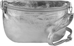 OBC Made in Italy Damen Leder Tasche Gürteltasche Crossbody Hüfttasche Bauchtasche Umhängetasche Cross-Over Bodybag Schultertasche Handytasche (Dunkelsilber)