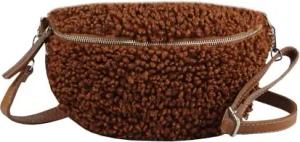 OBC Made in Italy Damen Teddyfell Tasche Plüsch Bauchtasche Hüfttasche Schultertasche Bodybag Umhängetasche Crossbody Teddyplüsch Handytasche Crossbag Gürteltasche Wintertasche Lammfell-Optik Braun
