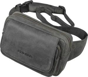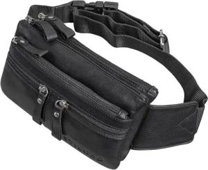 Bryce Bauchtasche Leder Gürteltasche Damen Herren Vintage Hüfttasche Reisetasche Urlaub Jogging Festival Echtleder Farbe:schwarz