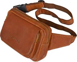 große Leder-Bauchtasche Cognac - Vintage Gürteltasche für Herren, Damen & Kinder - Retro Hüfttasche für Jogging, Festival, Urlaub 'Caspar'