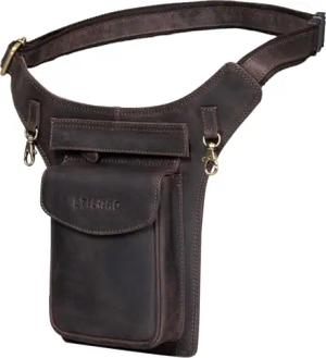 Marian Gürteltasche Leder Vintage für Herren Damen Bauchtasche Hüfttasche für Handy Kosmetik Kamera Reisen Party Konzerte Festival Echtleder Farbe:matt - Dunkelbraun