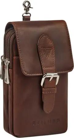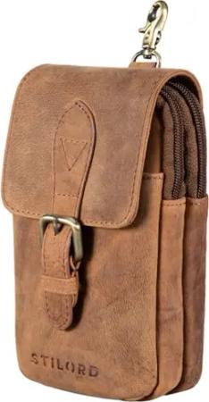 'Harper' Handy Gürteltasche Leder Vintage Kleine Handytasche Hüfttasche mit Karabinerhaken und Gürtelschlaufe Tasche für Herren Damen Echtleder, Farbe:Tropica - braun