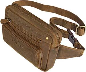 'Boston' Gürteltasche Leder Vintage Bauchtasche Männer Frauen Hüfttasche für Kamera Jogging Reise Festival Sport Doggy Bag Echtleder, Farbe:Florida - braun