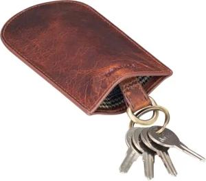 'Toby' Schlüsseltasche Leder Schlüsselglocke Schlüsseletui Vintage Schlüsselmäppchen für viele Schlüssel Autoschlüssel Kleines Etui mit Schlüsselring, Farbe:Prestige - braun