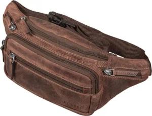 Lou Gürteltasche Hüfttasche Leder Vintage Bauchtasche für Herren Damen Kinder Cross Body Belt Bag für Jogging Festival Urlaub Handy Echt Leder Farbe:mittel - braun