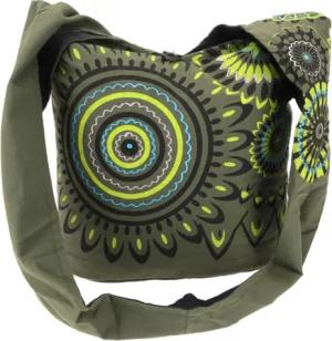 GURU SHOP Bestickte Boho Tasche, Schulterbeutel mit Mandala, Nepalbeutel - Olivgrün, Unisex - Erwachsene, Baumwolle, 40x35x14 cm