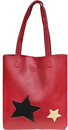 Damen-Handtasche Shopper Sterne Lederimitat Magnetverschluss 3600199 (bordeaux rot)