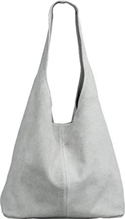 große Damen Wildleder Tasche Hobo Bag Shopper - CLASSIC LINE - Modell No.767 - Made in Italy, Farbe:hell grau, Größe:One Size