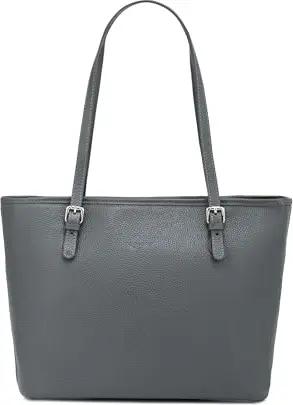 klassisch elegante Leder Tote Bag Damen Handtasche - PREMIUM LINE - Modell No.812 - Made in Italy, Farbe:dunkelgrau, Größe:One Size