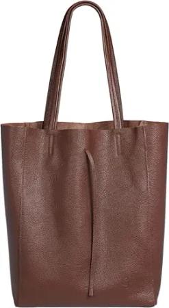 klassisch elegante Leder Tote Bag Damen Handtasche - PREMIUM LINE - Modell No.812 - Made in Italy, Farbe:dunkelbraun, Größe:One Size