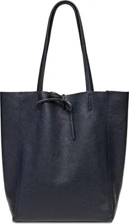 klassisch elegante Leder Tote Bag Damen Handtasche - PREMIUM LINE - Modell No.812 - Made in Italy, Farbe:dunkelblau, Größe:One Size
