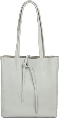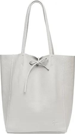 mittelgroße Leder Shopper Schultertasche Casual Damen Tasche mit Sicherheitsfach - CLASSIC LINE - Modell No.814 - Made in Italy, Farbe:hellgrau