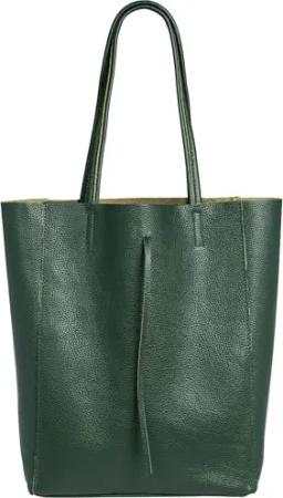 Großer Damen Leder Shopper Schultertasche mit Sicherheitsfach - CLASSIC LINE - Modell No.780 - Made in Italy, Farbe:tannengrün, Accessoires:One Size