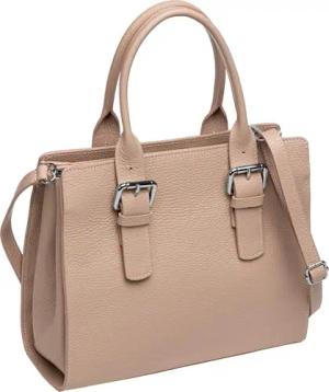 mittelgroße Leder Shopper Schultertasche Casual Damen Tasche mit Sicherheitsfach - CLASSIC LINE - Modell No.814 - Made in Italy, Farbe:rosa beige