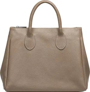 mittelgroße Leder Shopper Schultertasche Casual Damen Tasche mit Sicherheitsfach - CLASSIC LINE - Modell No.814 - Made in Italy, Farbe:taupe metallic