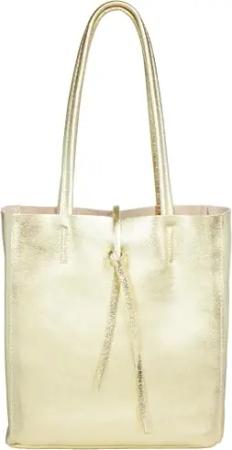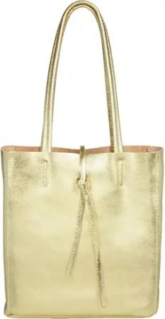 mittelgroße Leder Shopper Schultertasche Casual Damen Tasche mit Sicherheitsfach - CLASSIC LINE - Modell No.814 - Made in Italy, Farbe:gold metallic