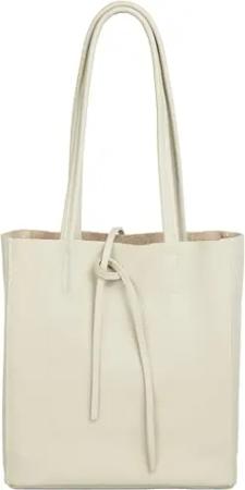 klassisch elegante Leder Tote Bag Damen Handtasche - PREMIUM LINE - Modell No.812 - Made in Italy, Farbe:beige, Größe:One Size