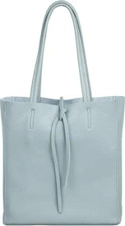 mittelgroße Leder Shopper Schultertasche Casual Damen Tasche mit Sicherheitsfach - CLASSIC LINE - Modell No.814 - Made in Italy, Farbe:hellblau