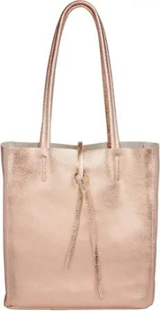 mittelgroße Leder Shopper Schultertasche Casual Damen Tasche mit Sicherheitsfach - CLASSIC LINE - Modell No.814 - Made in Italy, Farbe:roségold metallic