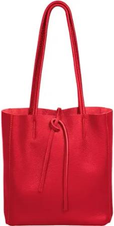 mittelgroße Leder Shopper Schultertasche Casual Damen Tasche mit Sicherheitsfach - CLASSIC LINE - Modell No.814 - Made in Italy, Farbe:rot