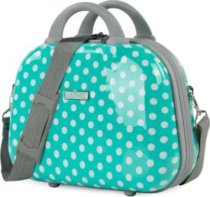 Hartschale Kosmetikkoffer jugendlich. Kulturtasche aus Polykarbonat. Spiegel Reißverschluss. Einziehbare Griff und Umhängetasche. Licht und bequem., Mint Moles