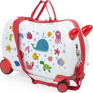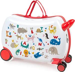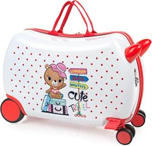 Kinderkoffer Mädchen & Jungen: Zum Draufsitzen, Kindergepäck, Kindertrolley - Reisebegleiter, Weiß-Rot