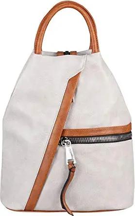 Damen Rucksack Tasche Schultertasche Leder Optik Daypack Backpack Handtasche Tagesrucksack Cityrucksack Grau-Braun