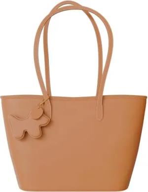 Damen Shopper Hand Umhänge Schulter Tasche Veganes Leder 30619 Beige/Brown