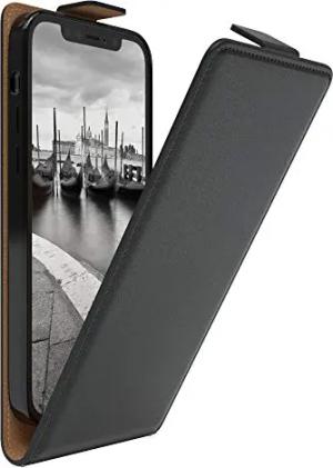 Hülle kompatibel mit iPhone 12/12 Pro Flip Cover zum Aufklappen, Handyhülle aufklappbar, Schutzhülle, Flipcover, Flipcase, Flipstyle Case vertikal klappbar, aus Kunstleder, Schwarz