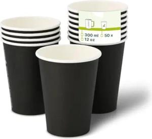 Pappbecher 300 ml, Ø 9 cm DHD04537 , 1 Karton = 20 Packungen à 50 Stück, Farbe: schwarz