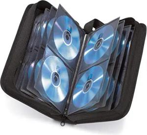 CD Tasche für 64 Discs/CD/DVD/Blu-ray (Mappe zur Aufbewahrung, platzsparend für Auto und Zuhause, Transport-Hüllen) Schwarz