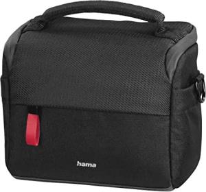 Kameratasche Matera 110 (kompakte Fototasche für Gürtelschlaufe, Kameratasche für Digitalkamera und Zubehör, Umhängetasche mit Schultergurt und Zubehörfächern, recyceltes PET) schwarz