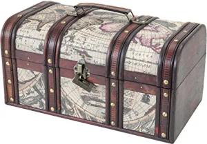 VKO101 Vintage Koffer aus Holz | 38 x 26 x 13 cm | Groß | Deko Weltkarte