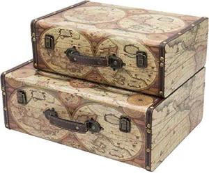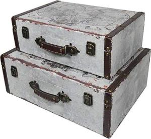 VKO101 Vintage Koffer aus Holz, 2er Set, Versch. Größen, Deko Weltkarte