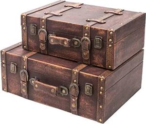 VKO105 Vintage Koffer aus Holz, 2er Set, Versch. Größen, Deko Barock