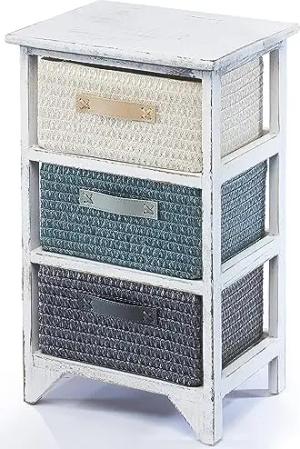 Kommode Holzregal aus Holz - White Washed - mit 3 Schubfächern - Used Look