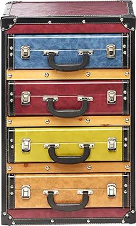 Kommode Regal in Kofferoptik - bunt - 4 Fächer - 40x30x63 cm - Kunstleder und Holz - Wohnzimmer Esszimmer Büro