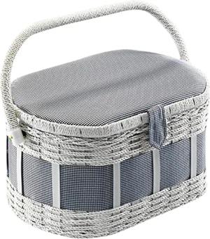 Nähkästchen Nähkorb Nähkörbchen Nähkasten - blau-weiß kariert - 28x19x16 cm